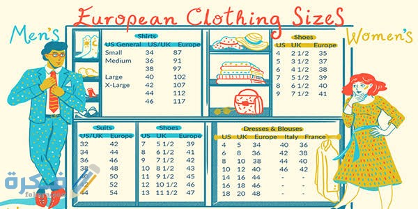 تحويل مقاسات الملابس من امريكي الى اوربي