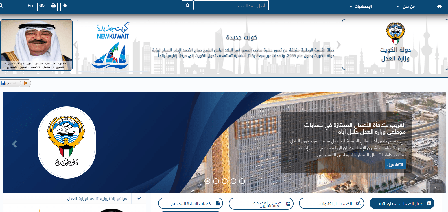 - قم بالتوجه إلى الموقع الرسمي الخاص بوزارة العدل الكويتية من هنا .
