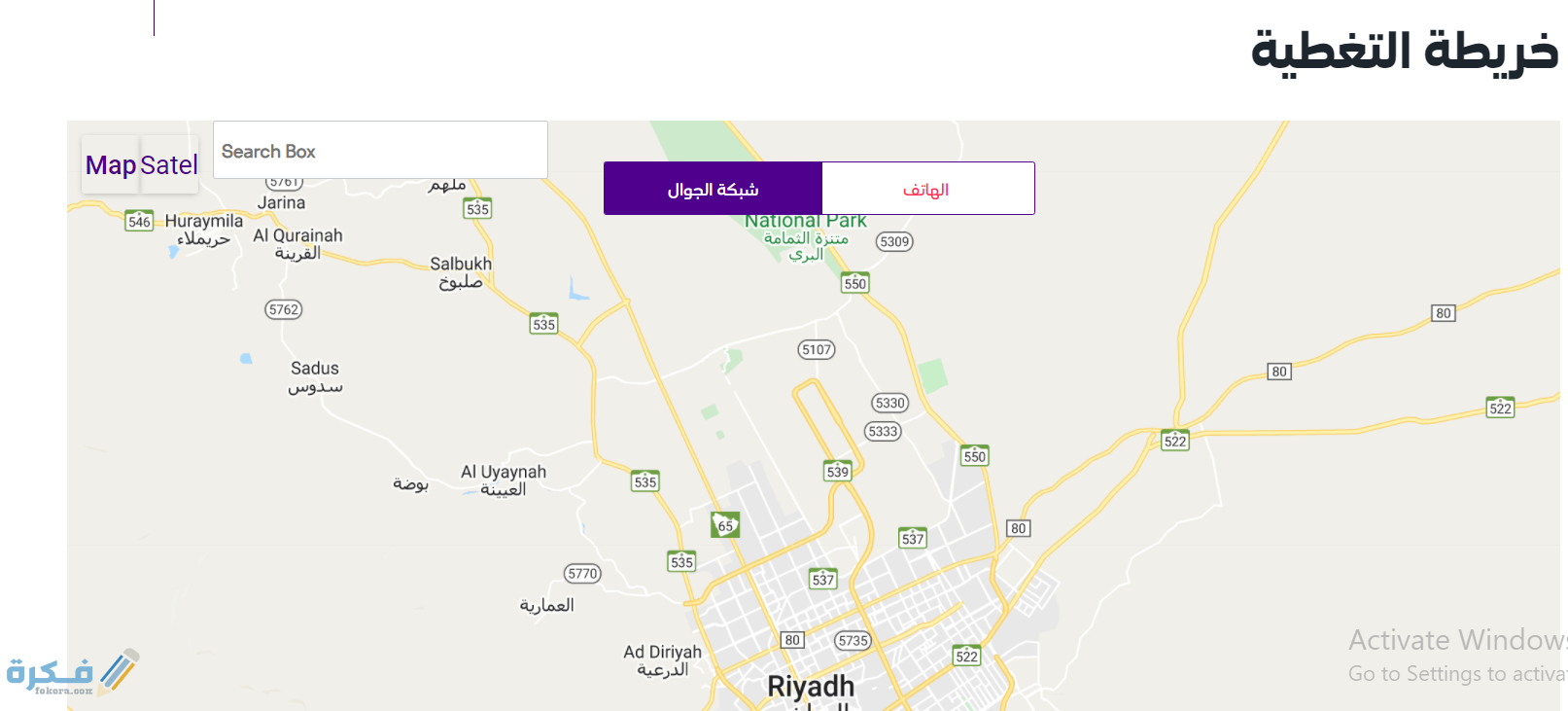 • قم بالنزول الى أسفل الصفحة الرئيسية ومن الخيارات الموجودة أسفل “المساعدة” اضغط على “خرائط التغطية”.