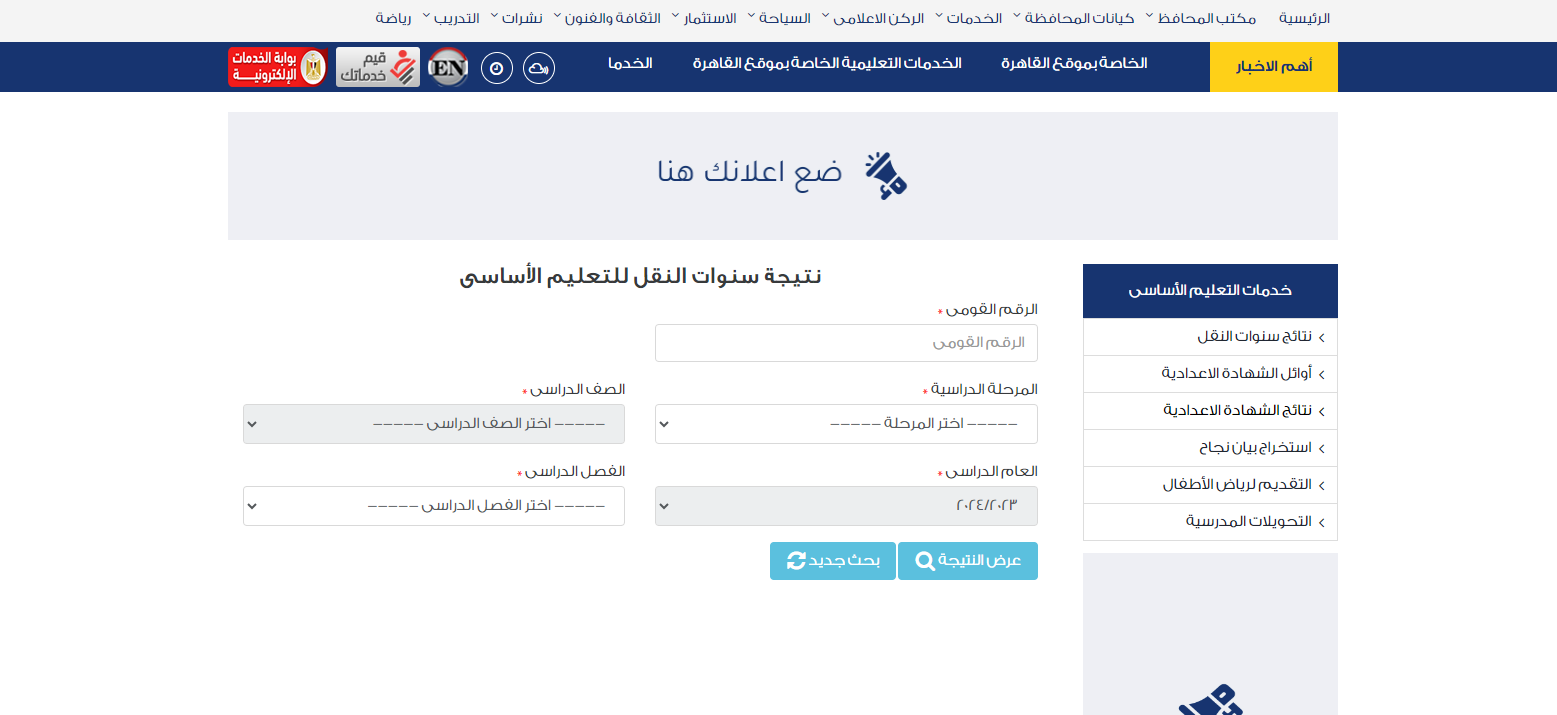 نتيجة الصف الخامس الابتدائي الترم الثاني 2024 بالرقم القومي او بالاسم فقط رابط بوابة التعليم الأساسي
