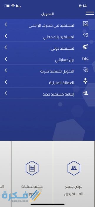 - ثم اختيار خدمة “تحويل” والضغط على “مستفيد جديد”.