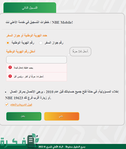 - اصنع حساب بالرقم القومي أو رقم جواز السفر.