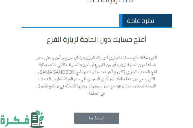 رابط حجز موعد بنك الجزيرة بالخطوات والطريقة الصحيحة للحجز الإلكتروني من المعلومات التي تهم أصحاب الأعمال في السعودية نظرًا لما يوفره بنك الجزيرة من حلول تمويلية وخطط استثمارية لعملائه، ونبين لكم عبر موقع فكرة طريقة حجز الموعد وتسجيل حساب في البنك.