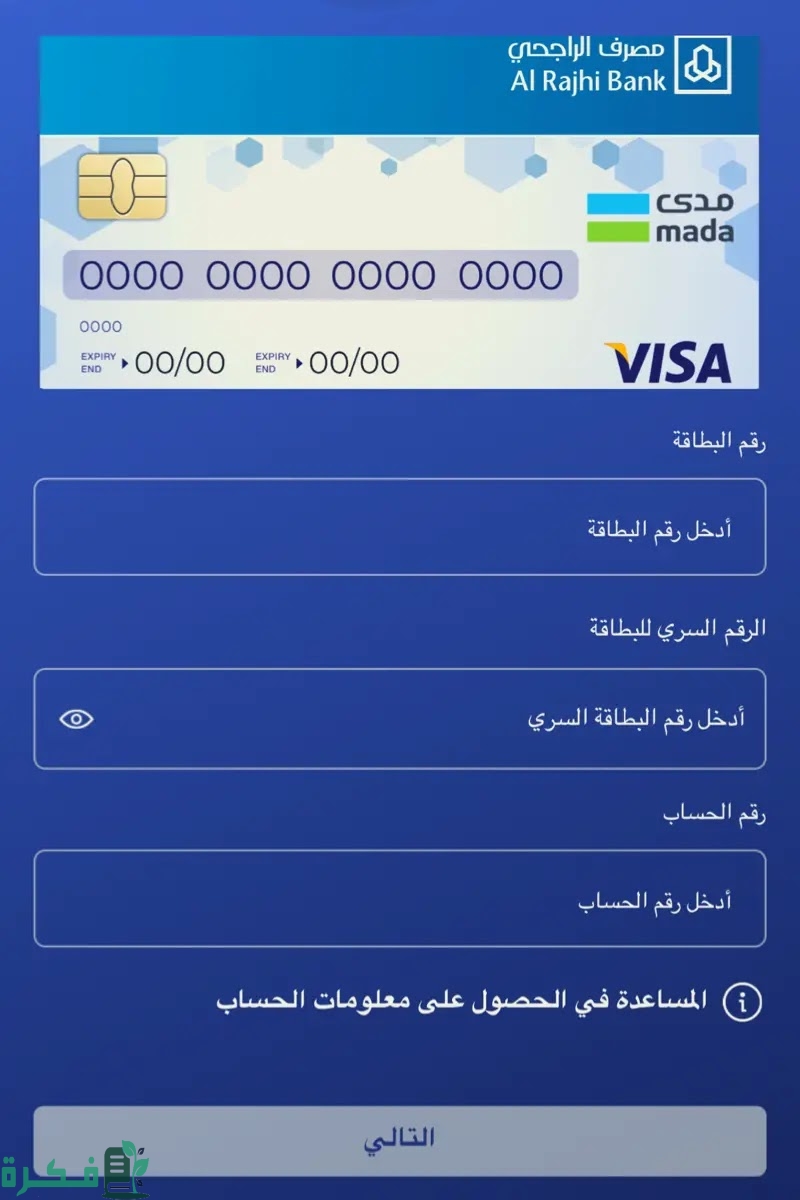 - كتابة البيانات المطلوبة ومنها رقم بطاقة صراف الراجحي، الرقم السري الخاص بالمستخدم، رقم الحساب.