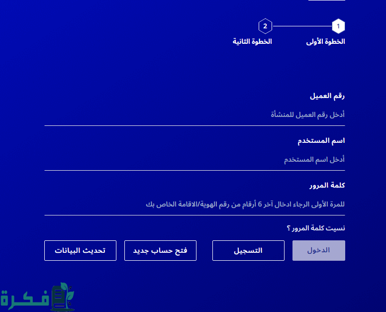 - في حالة عدم التسجيل من قبل يمكن الدخول إلى الخانة الخاصة بعملية تسجيل حساب جديد ومليء البيانات التي تطرح على العميل.