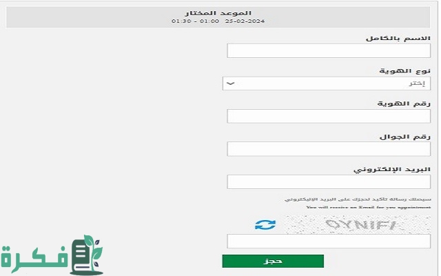 - ادخل كافة البيانات والمعلومات المطلوبة في الخانات المُخصصة لها لتأكيد الموعد.