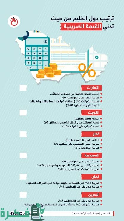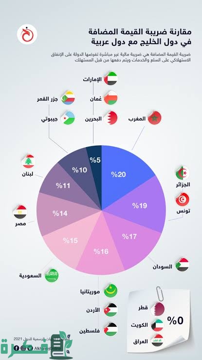 نسبة ضريبة القيمة المضافة في الخليج العربي