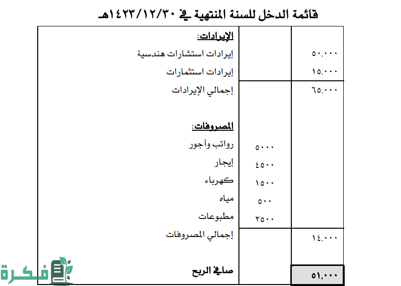 كيف اطلع صافي الربح في قائمة الدخل؟