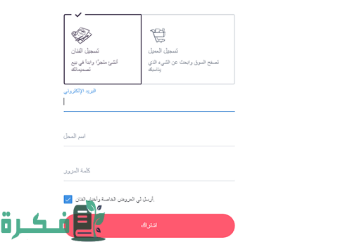 - ثم إدخال عنوان البريد الإلكتروني، واسم المحل وإضافة كلمة مرور.
