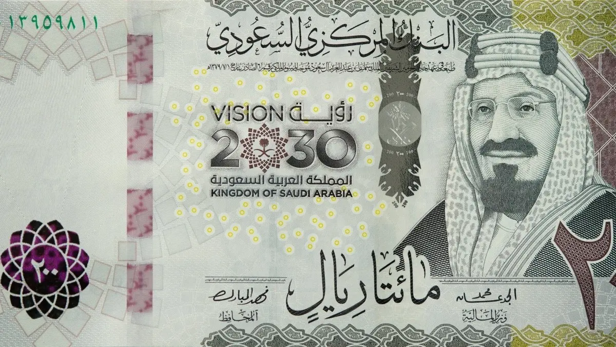 - 200 ريال: تم طباعة شعار السعودية “رؤية المملكة 2030” مع الساحة الخارجية لقصر الحكم في الرياض باللون الرصاصي.