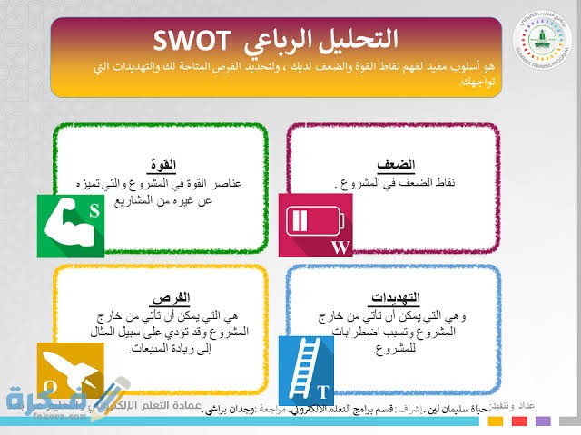 - وهنا تكون نقطة جيدة للقائمين على المشروع وتحويل مسار نقاط الضعف إلى نقاط قوة.