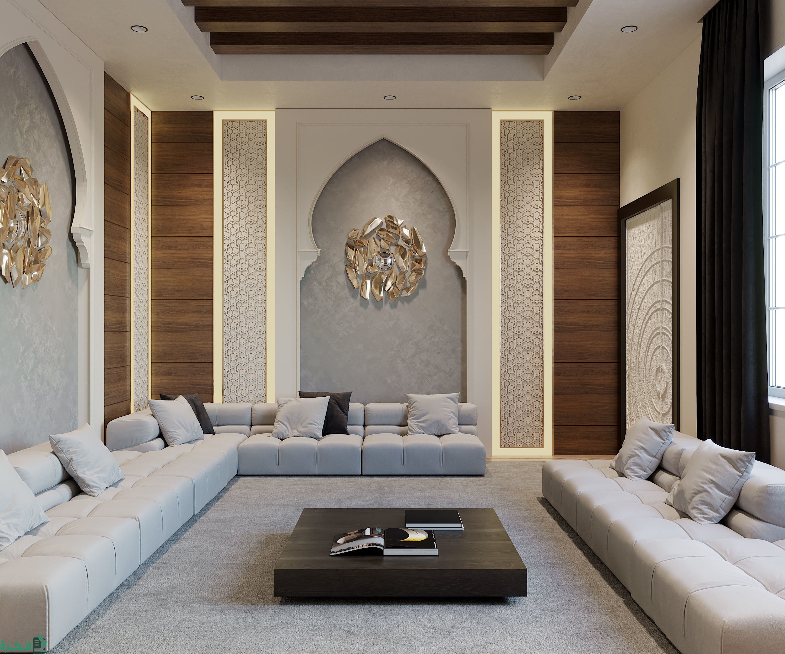 • فالمجلس هو عبارة عن المكان الذي يمثل ذوق أصحاب المنزل، وحجمه يكون متناسبًا مع حجم المنزل، وهناك الكثير من التصاميم المختلفة للمجالس الأرضية المودرن.
