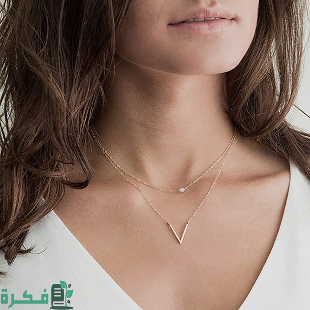 - الياقة على حرف V: يتماشى معها أي عقد ناعم، أو الذي يُزين بدلايات صغيرة ناعمة.
