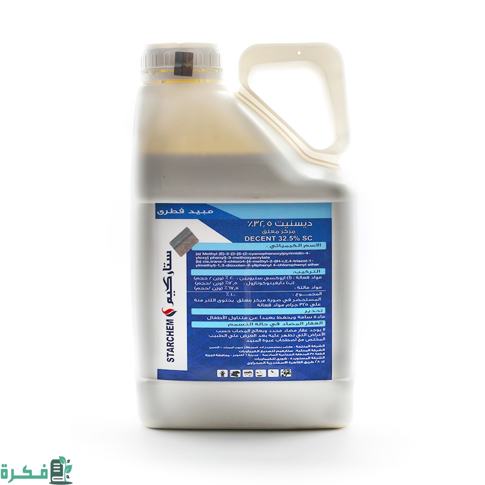 • وهو مبيد صيني يتكون من مادتين فعالتين وهما اوزكسي ستروبين بتركيز 20% وديفنوكونازول بتركيز 12.5%، يوجد بكل لتر من مبيد ديسينت 325 جرام مواد فعالة.