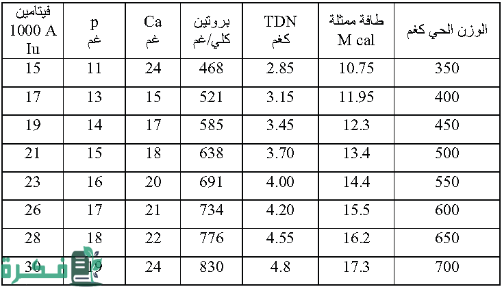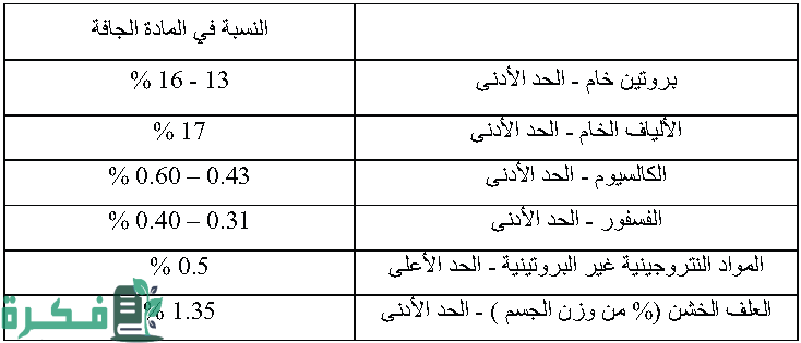 - ألا تكون كمية ووزن النخالة في العليقة يزيد عن 3 كيلو جرام.