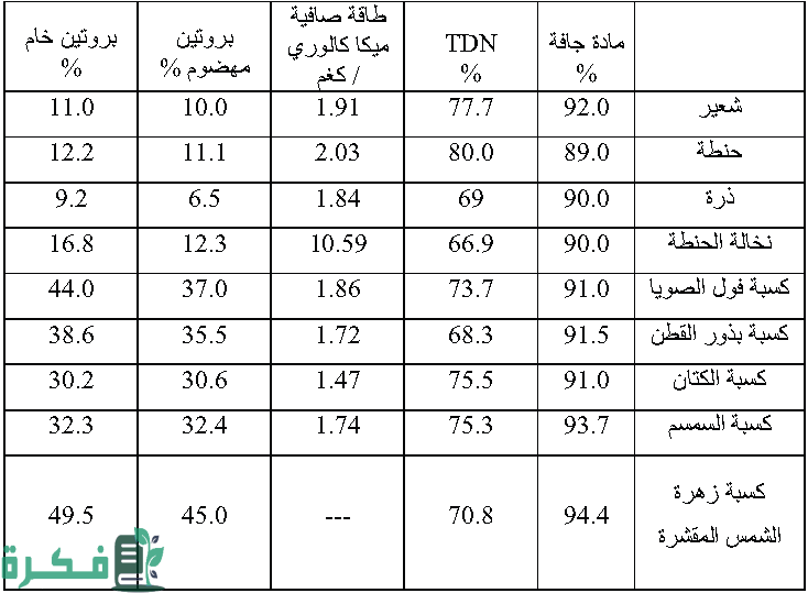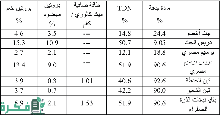- ألا تزيد نسبة وكمية الذرة الخضراء المقطعة عن 25 كيلو جرام وذلك لأن زيادتها تسبب الإسهال.