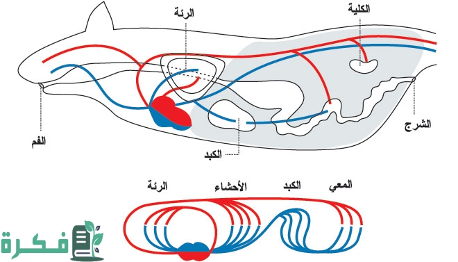 • الأسماك وجميع الحيوانات التي يوجد لديها خياشيم تمتلك جهاز دوران مغلق، يتحرك فيه الدم من القلب إلى الخياشيم ومنها إلى خلايا الجسم، ثم يعاود حركته إلى القلب.