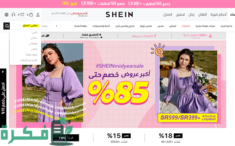 أقسام متجر شي ان
