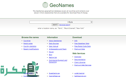 - الدخول إلى الموقع الرسمي لــ Geonames من هنـــــــــــا.