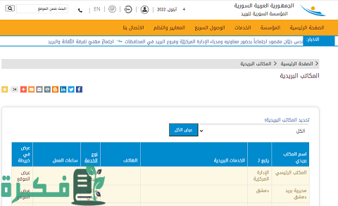 - الدخول إلى الموقع الرسمي الجمهورية العربية السـورية المؤسسة السورية للبريد من هنـــــــــــــــــا.