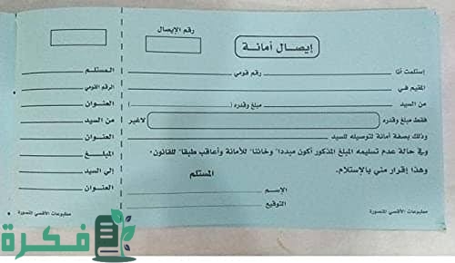 - أن يكون إيصال الأمانة متضمن إلى بصمة المستلم.