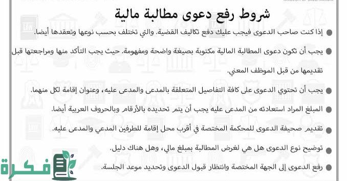 إن دعوى المطالبة بالمستحقات المالية في القانون المصري يحتاج مجموعة من الشروط وهي كالتالي: