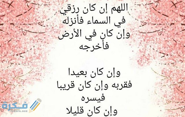 - اللهم افتح علينا أبواب رزقك الحلال من واسع فضلك واكفنا بحلالك عن حرامك وأغننا بفضلك عمن سواك.