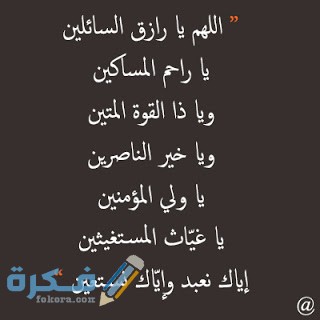 - اللهم يامالك الملك تؤتي الملك من تشاء وتنزع الملك عمن تشاء تعز من تشاء وتذل من تشاء بيدك الخير انك على كل شي قدير. تولج الليل في النهار وتولج النهار في الليل وتخرج الحي من الميت وتخرج الميت من الحي. وترزق من تشاء بغير حساب