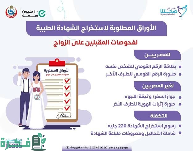 الأوراق المطلوبة لاستخراج الشهادة الصحية للزواج