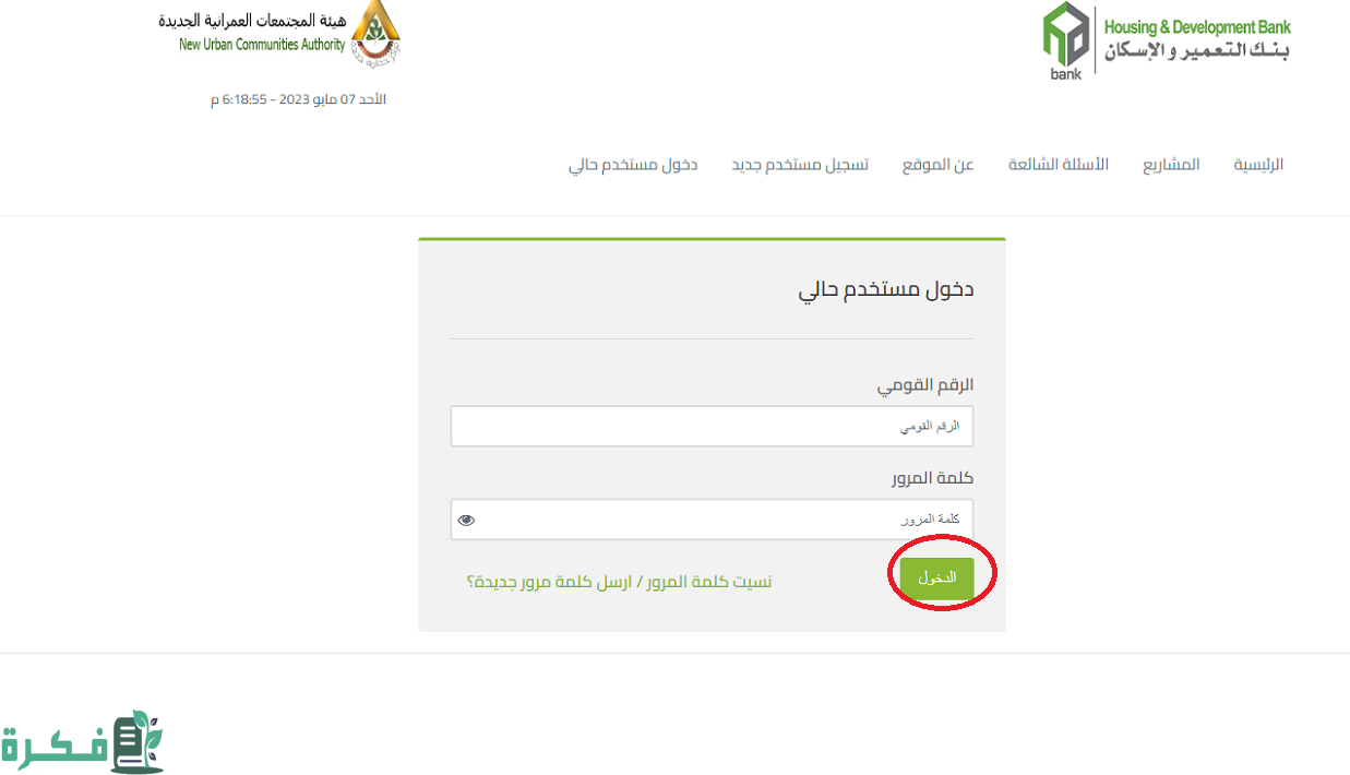 - إدخال كافة البيانات المطلوبة، ثم النقر على كلمة “تسجيل الدخول“.
