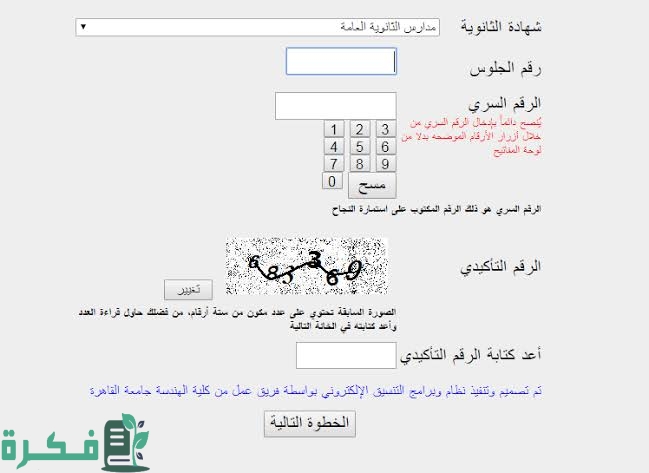 - يقوم الطالب بإدخال رقم الجلوس والرقم السري موجود على استمارة النجاح التى يحصل عليها الطالب من المدرسة.