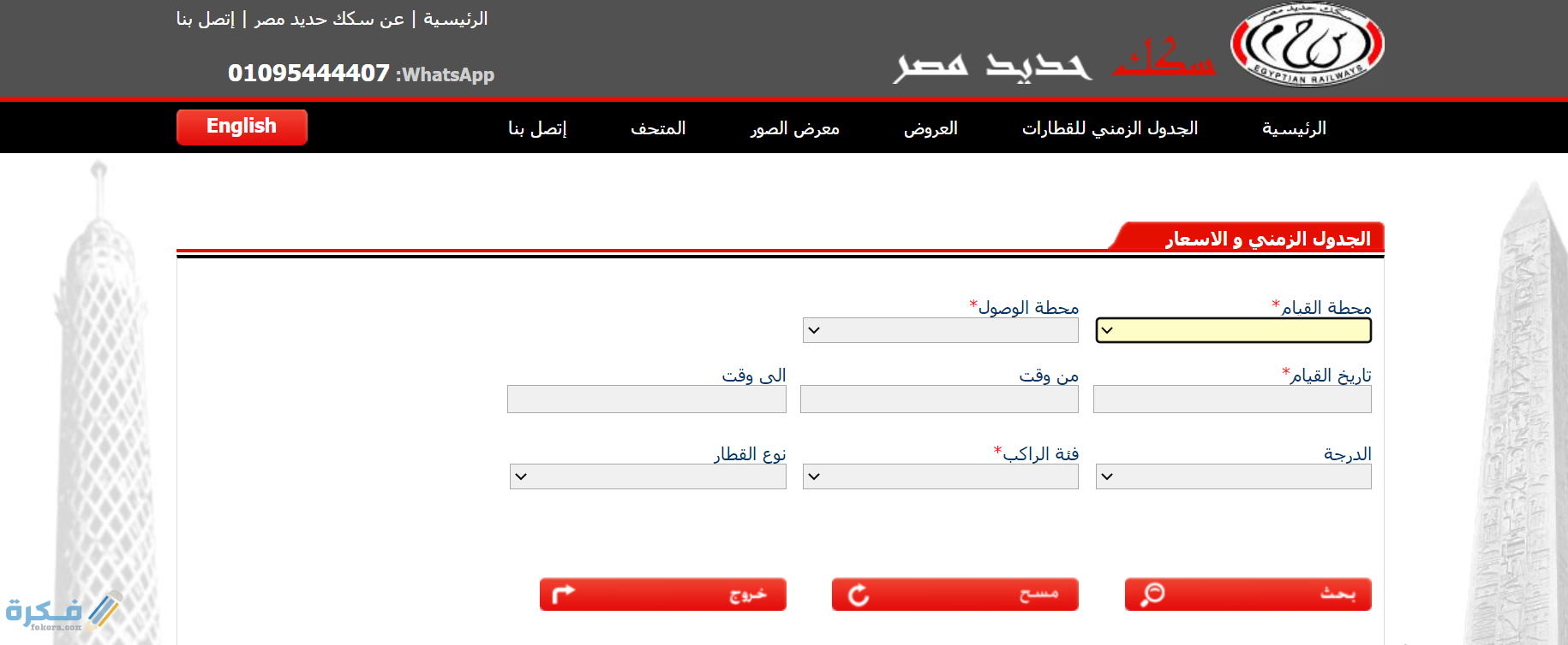 - الدخول الى الموقع الالكتروني الرسمي لسكك حديد مصر، ثم الانتقال الى خدمة حجز التذاكر.