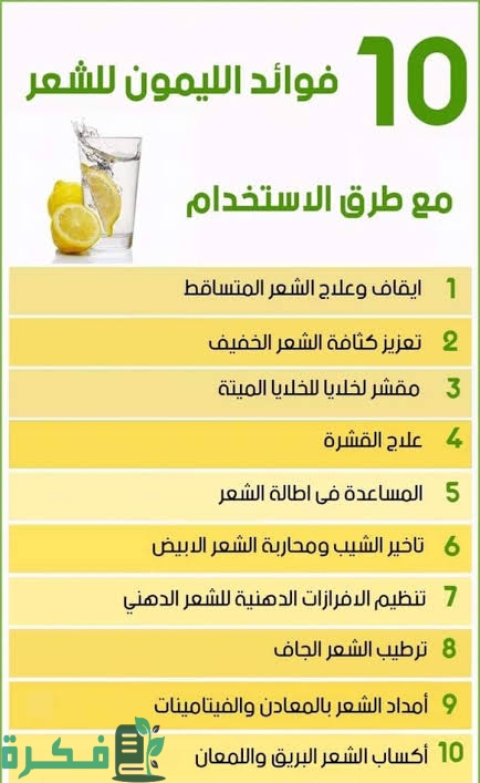 الليمون له فوائد عديدة جدا سواء للبشرة أو للشعر ومن فوائد الليمون على الشعر ما يلي: