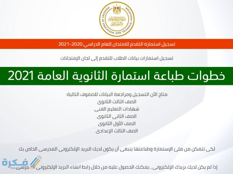 طبقا لما قدمت وزارة التربية والتعليم أن آخر موعد لطباعة استمارة الثانوية العامة لعام٢٠٢٢ تحدد أنه يوم الخميس ٢٤فبراير لعام ٢٠٢٢.