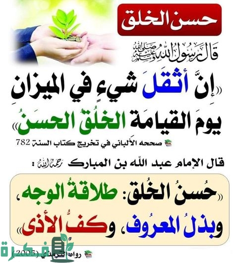 - تضمن الأخلاق بناء الحجر الأساس الذي ينطلق فيه المجتمع نحو الاستقرار والسلام، وسط تلك الأجواء العامرة بالتفاهم والسرور.
