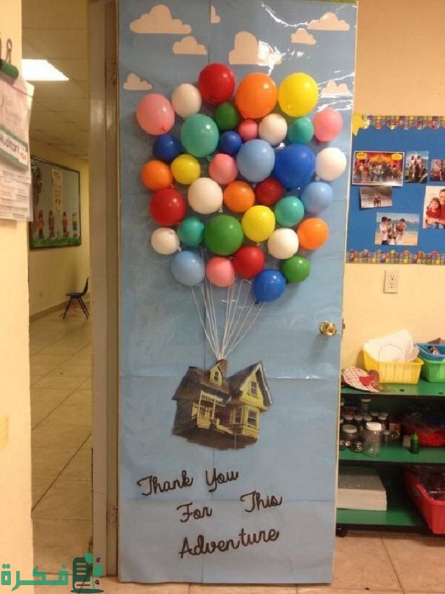 حيثُ يُمكن نفخ البالونات المختلفة وتثبيتها جميعًا في خيطٍ واحد، ويتم وضعها على باب الفصل، بالإضافة إلى رسم بيتٍ يُشبه البيت الموجود في الرسوم المتحركة، فإن ذلك الأمر يُشعر الأطفال بالسعادة.