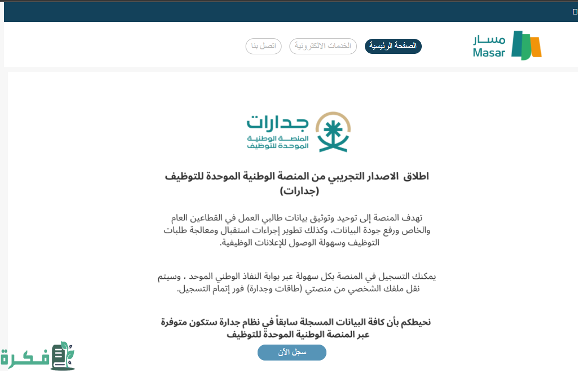 - تسجيل الدخول إلى المنصة الوطنية الموحدة للتوظيف جدارات من هنا.