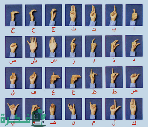 - الحروف الأبجدية في اللغة العربية بلغة الإشارة.
