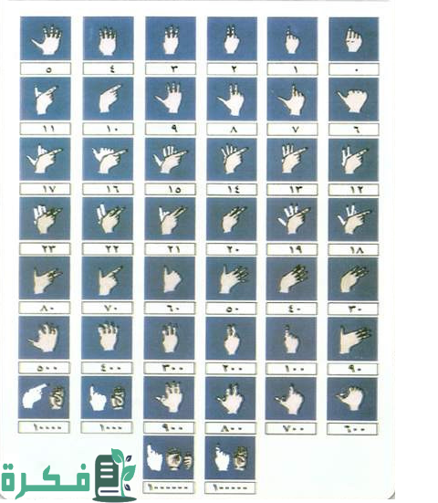- تستخدم حركات الأصابع في اليدين للدلالة على الحروف والأرقام.