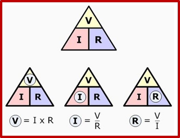 • فرق الجهد “V” = المقاومة “R” × شدة التيار الكهربائي”I”.