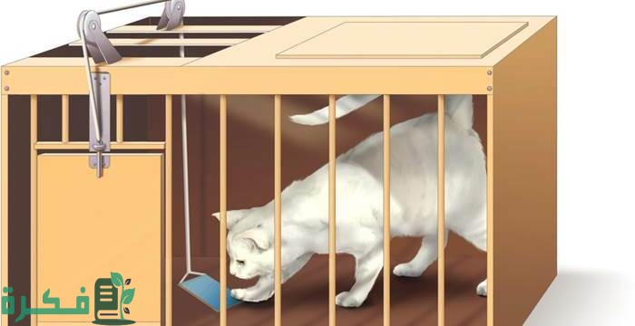 - عندما يُوضَع القط داخل الصندوق ووضع الطعام أمامه فإنه سرعان ما يبدأ في البحث عن الطريقة التي يمكن أن يخرج بها.