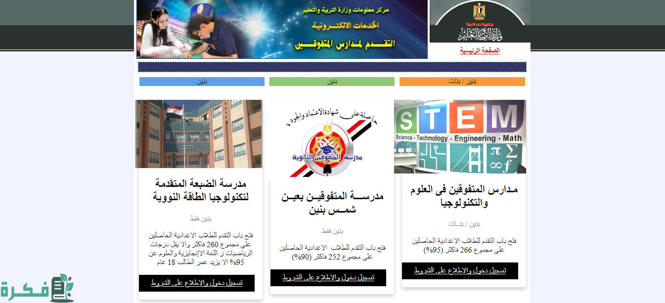 - يستطيع الطالب اختيار مدرسة المتفوقين بعين شمس للطلاب البنين فقط.
