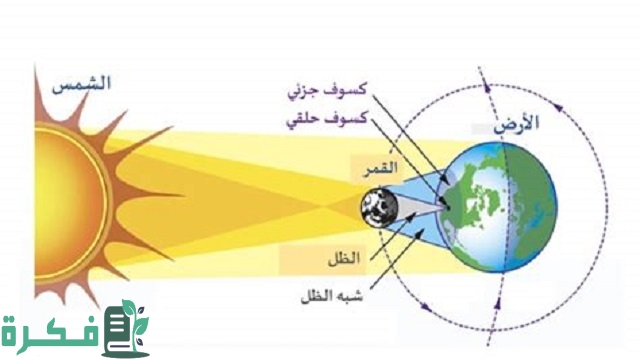 - وتتم الظاهرة أثناء دورانه في خط مستقيم لحجب الشمس عن كوكب الأرض.