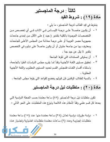 - أن يكون المتقدم حاصل علي تقدير عام على الأقل جيد من واحدة من الجامعات المصرية أو ما يعادل هذا التقدير من الساعات المعتمدة وذلك مع مراعاة الشروط الخاصة بكل جامعة.