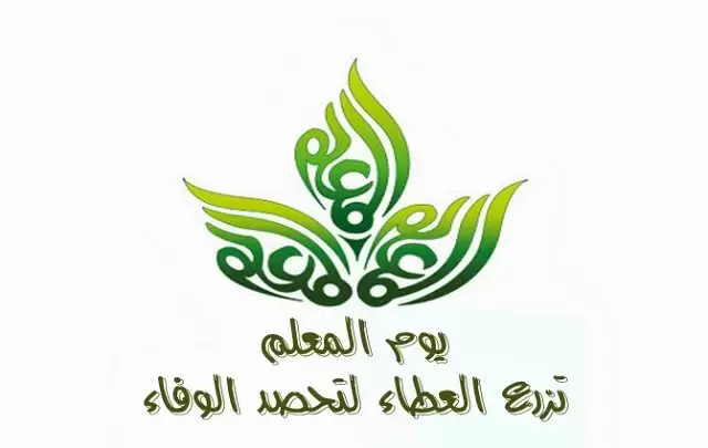 - وتحت ذلك الشعار تتواجد عبارة يوم المعلم تزرع العطاء لتحصد الوفاء.