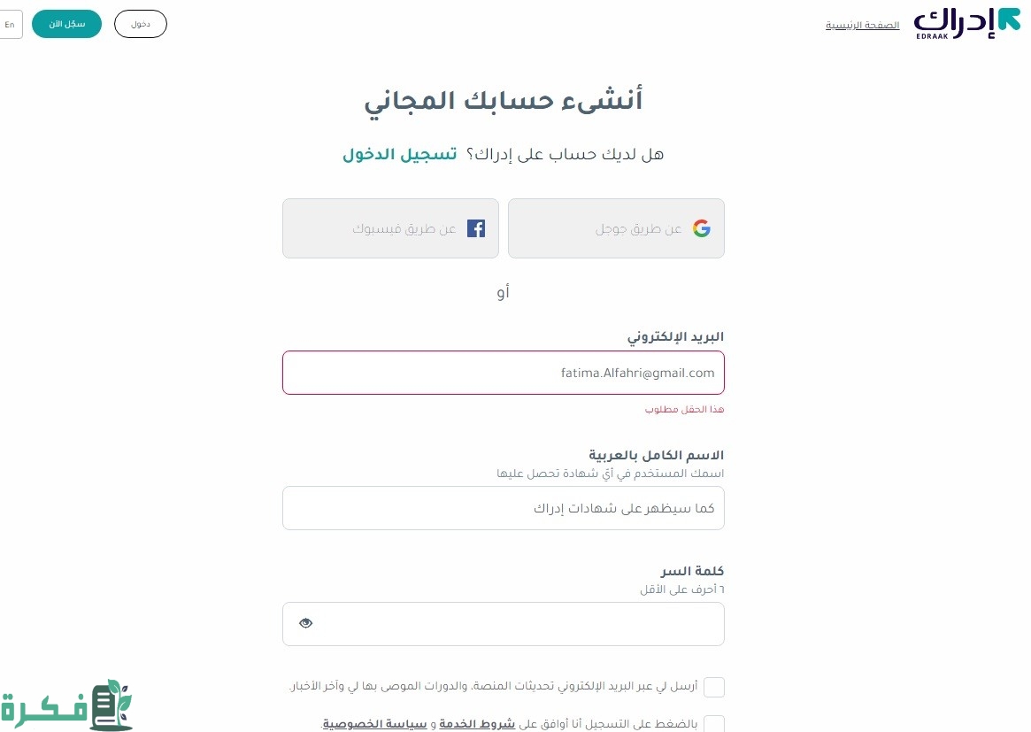 - إنشاء حساب من خلال إدخال بعض البيانات