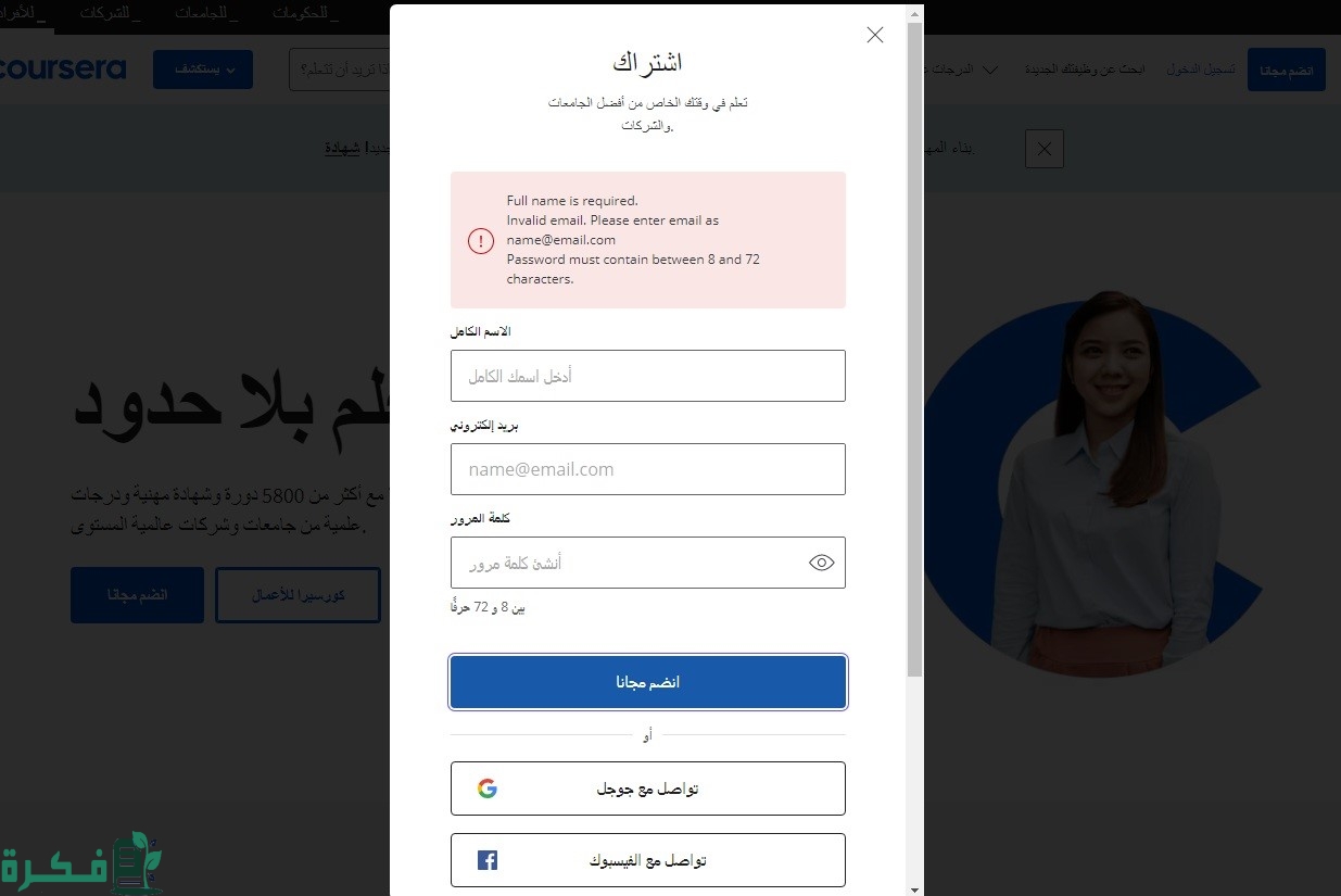 - إدخال كافة البيانات المطلوبة، والدخول سواء من خلال حسابك الخاص على جوجل أو فيس بوك.