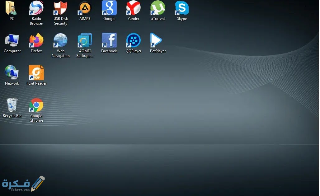 - حيث نجد أيقونة جهاز الكمبيوتر الأساسية و أيقونة سلة المحذوفات وأيقونة “ملفاتي” وغيرها من الأيقونات، و الأيقونات الأخرى الغير أساسية التي تختلف باختلاف عمل البرامج والتطبيقات ووفقا الي اهتمامات المستخدم صاحب الجهاز.