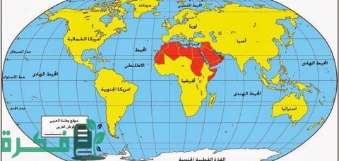 - عندما يريد الشخص التعرف على موقع الوطن العربي الجغرافي فسوف يجد بأنه واقع بين خطي الطول 60 من ناحية الشرق و16غربًا.