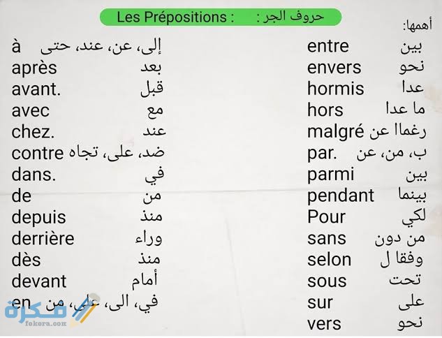 ما هي حروف الجر في اللغة الفرنسية